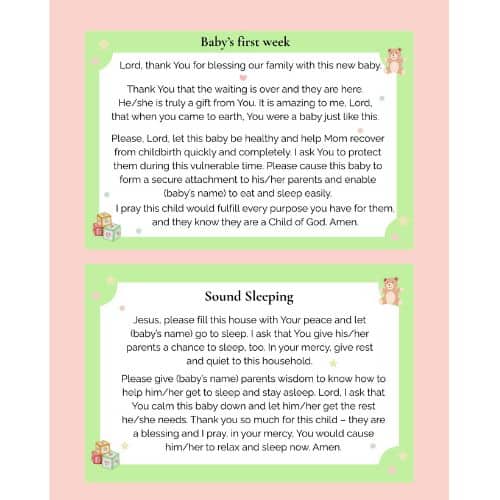 Simple, faith-filled prayers you can keep nearby, tuck into a Bible, and pray over your grandbaby each day.